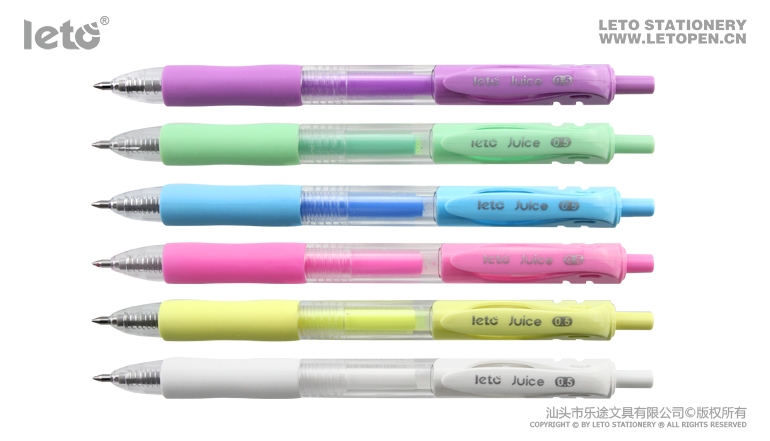 產品描述:0.5mm彩色(se)墨水中性(xing)筆(bi)(按動式)