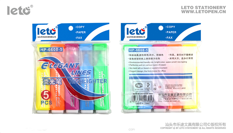 樂途牌HP-6608熒光(guang)筆(bi),采用獨特墨(mo)水,環保(bao)無(wu)毒;